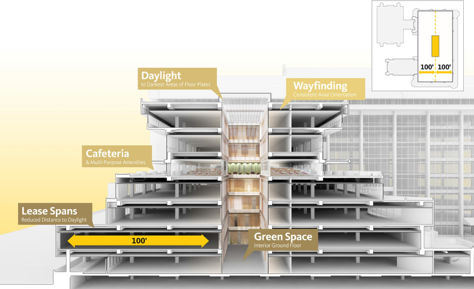 SIZE 183,000 gross square feet, 230′ tall.